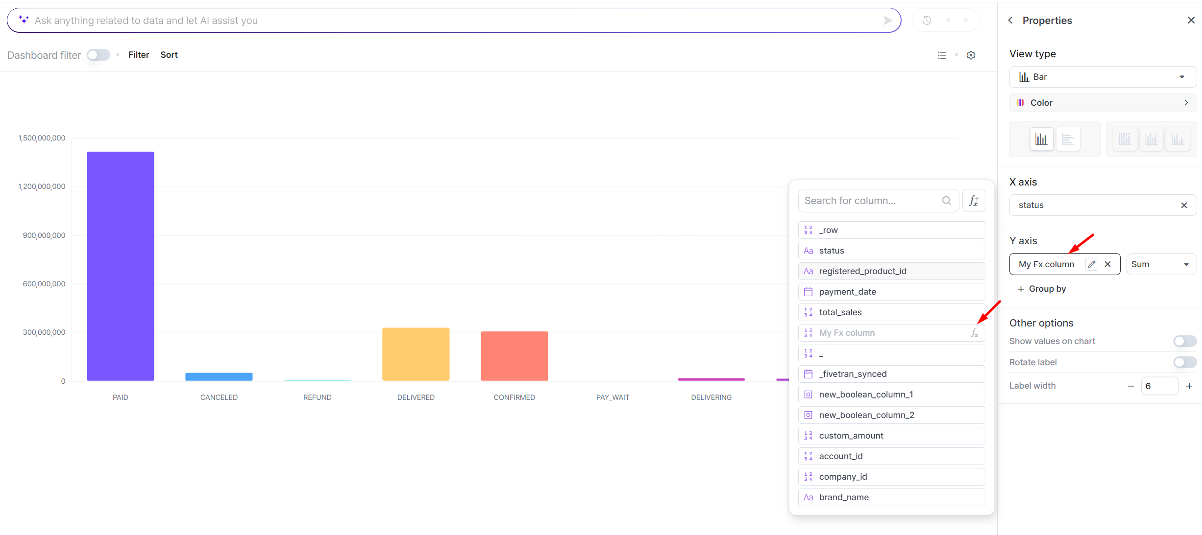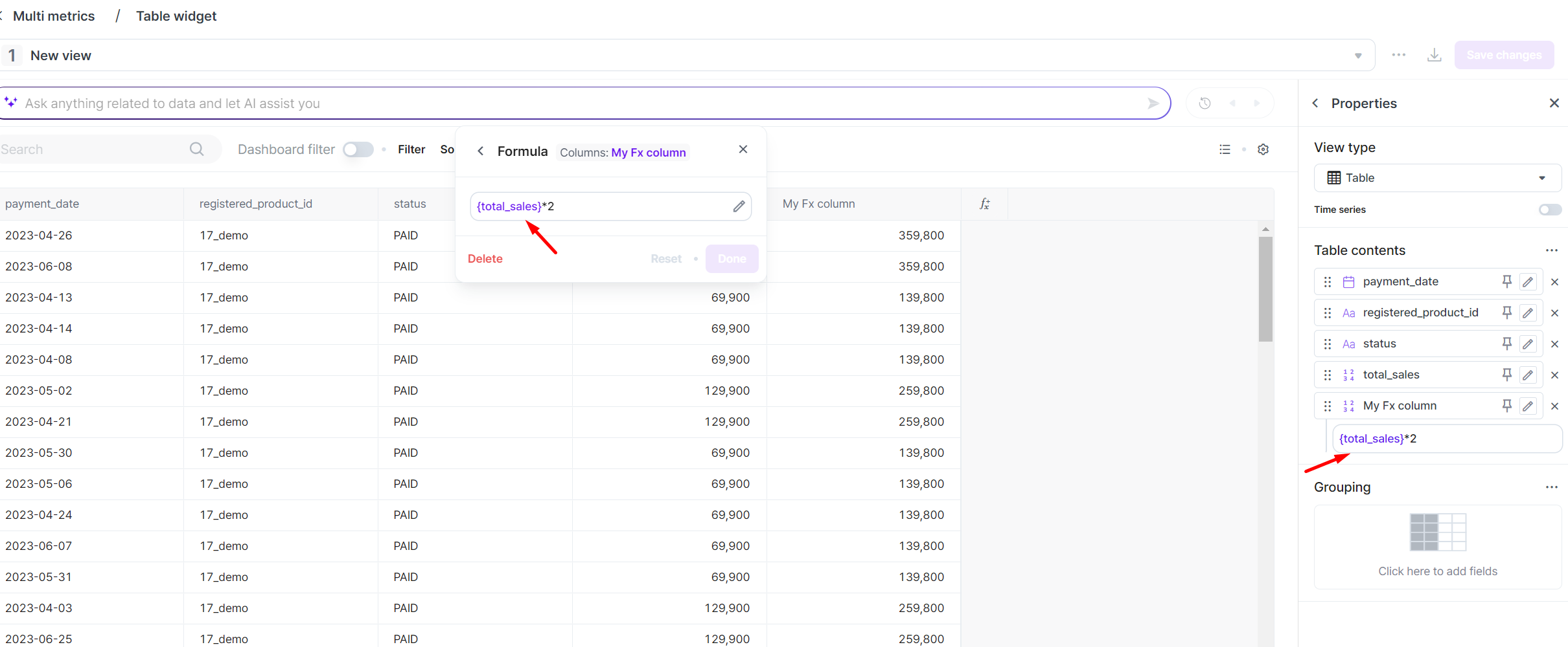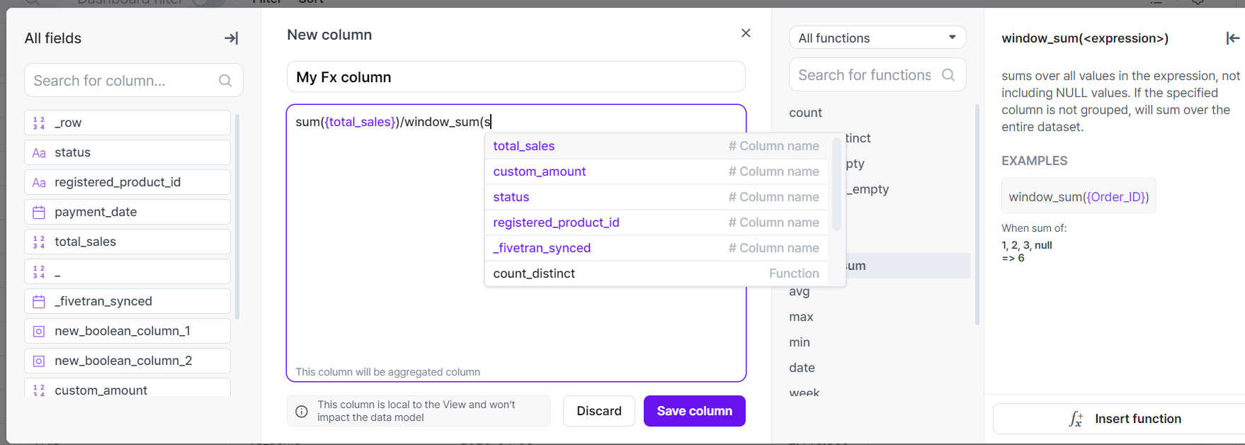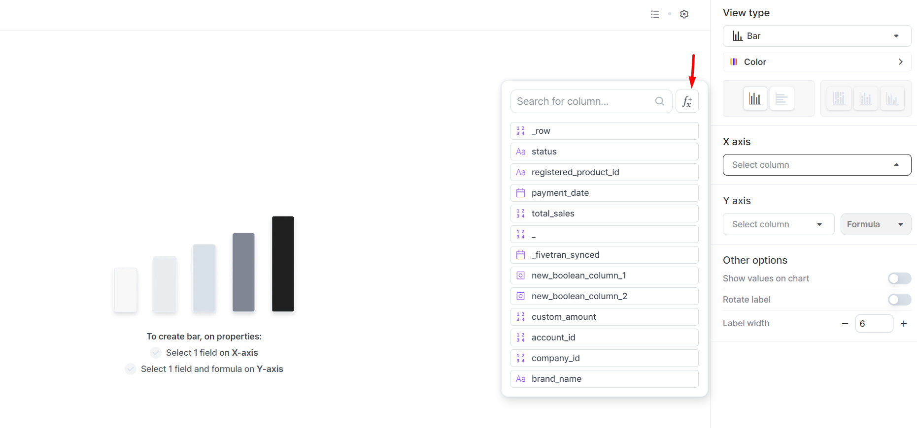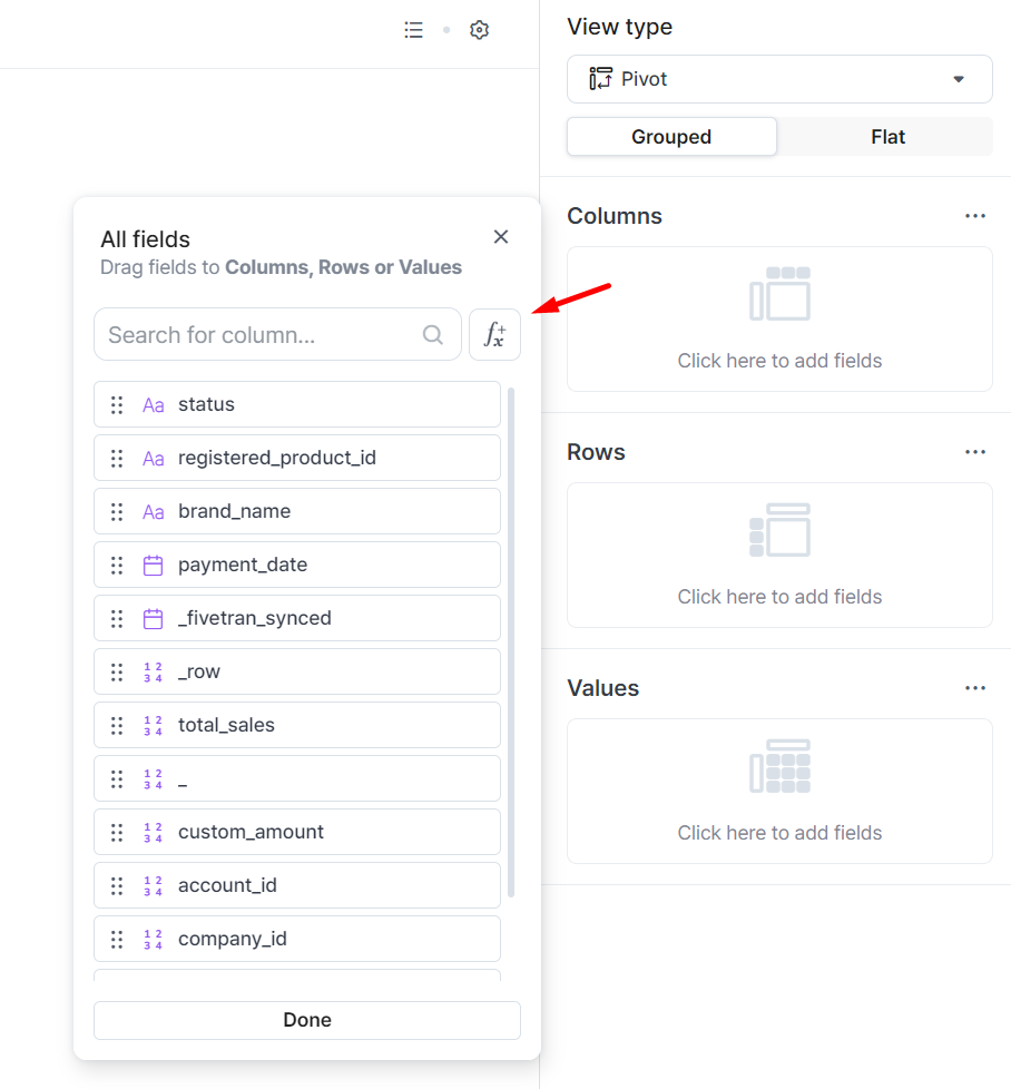 * For other widgets, you can find the Fx icon when adding the column to create a widget.