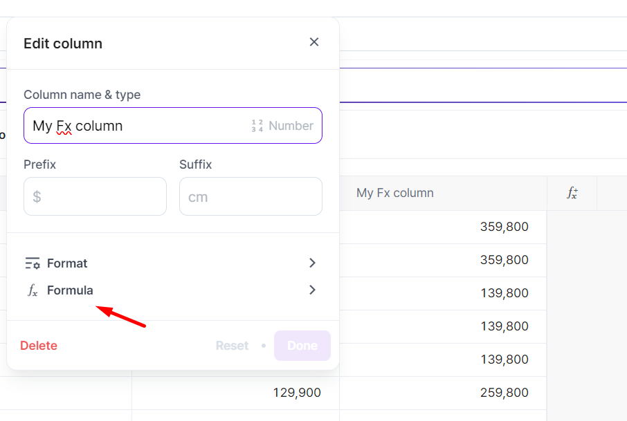 ## Edit a custom formula column
