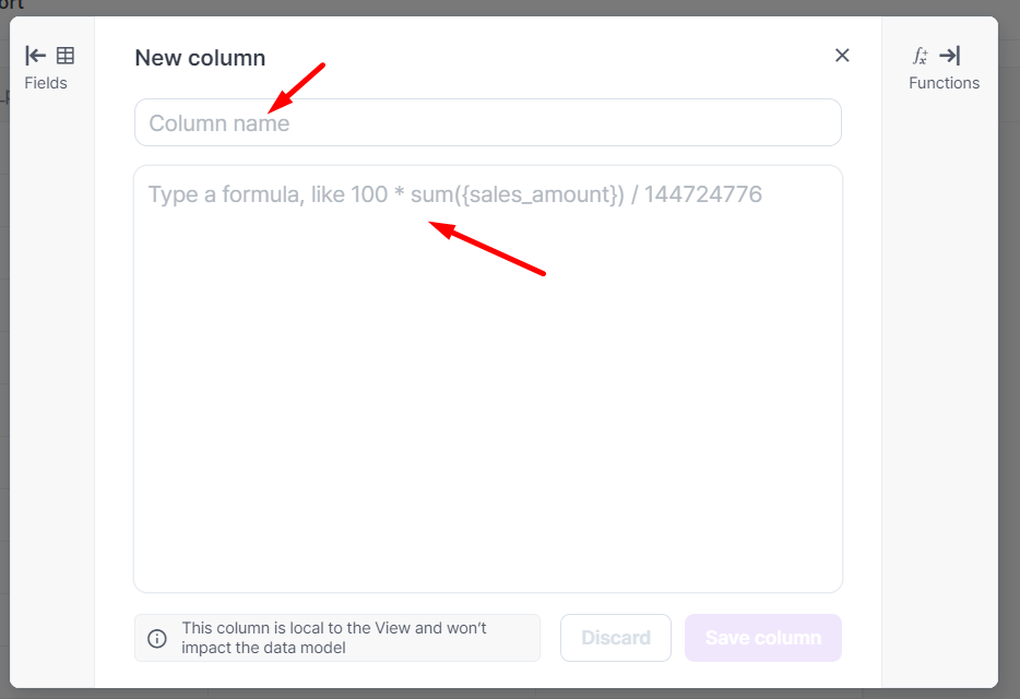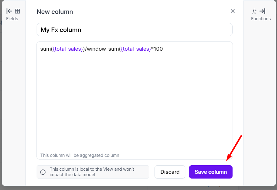 * Select the arrows next to Fields and Functions to browse and pick the desired column easily.