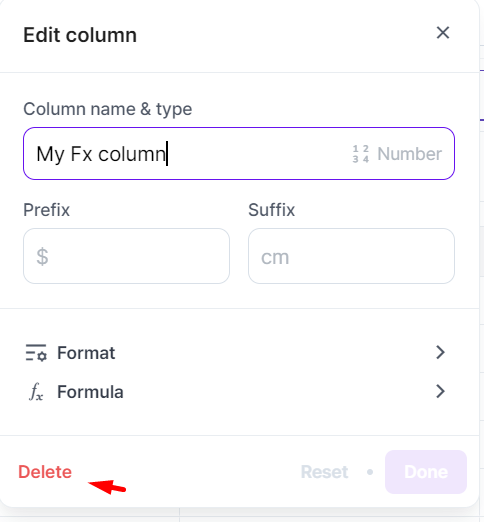 ## Delete a custom formula column